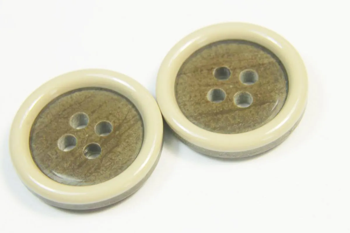 Пуговица костюмная, 4 прокола, коричневая с беж. ободком, диаметр 21 мм