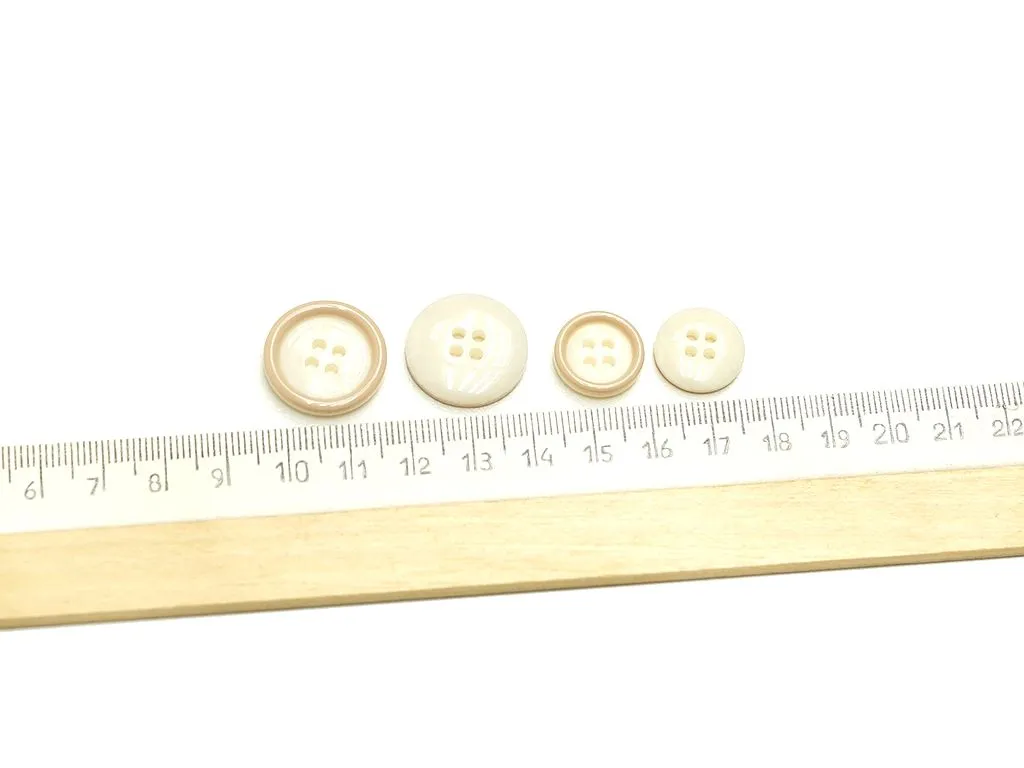 Пуговица костюмная, 4 прокола, молочного цвета с бежевым ободком, диаметр 21 мм