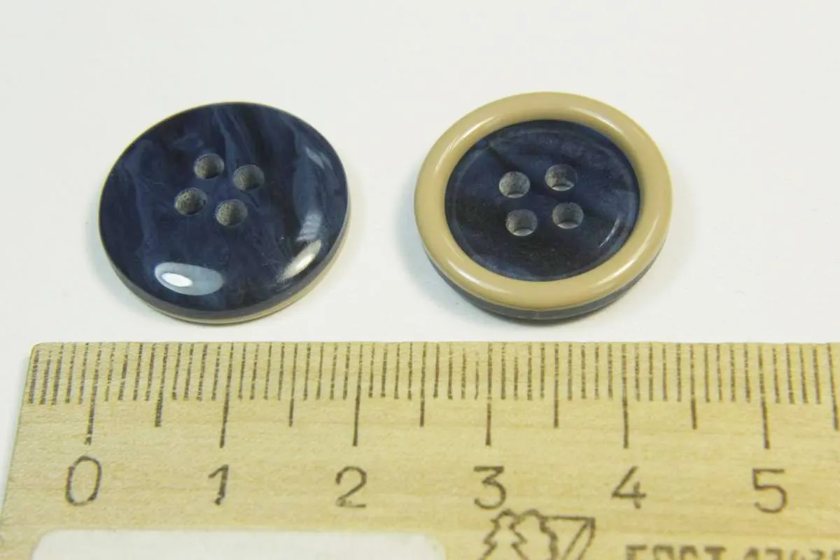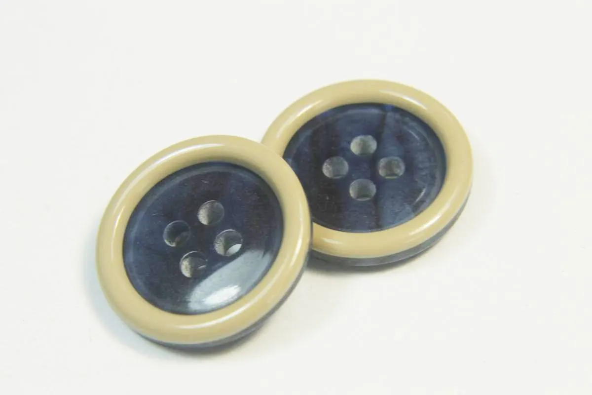 Пуговица костюмная, 4 прокола, синяя с беж. ободком, диаметр 21 мм