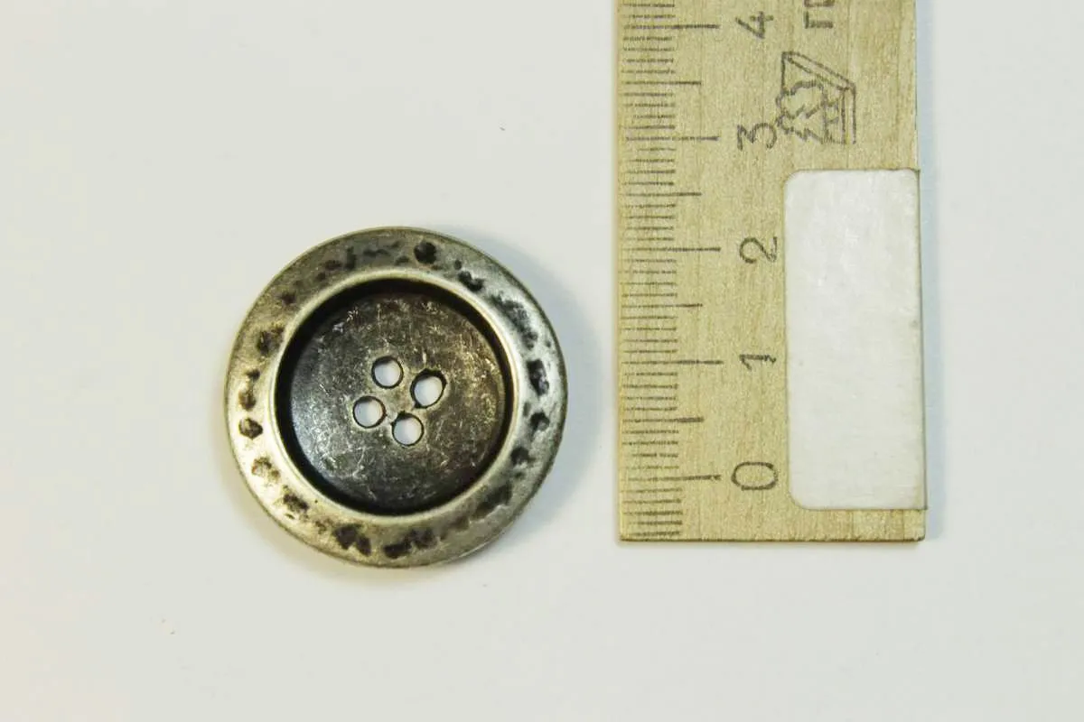 Пуговица металлическая, четыре прокола, серебряная с чернёной серединой, диаметр 29 мм