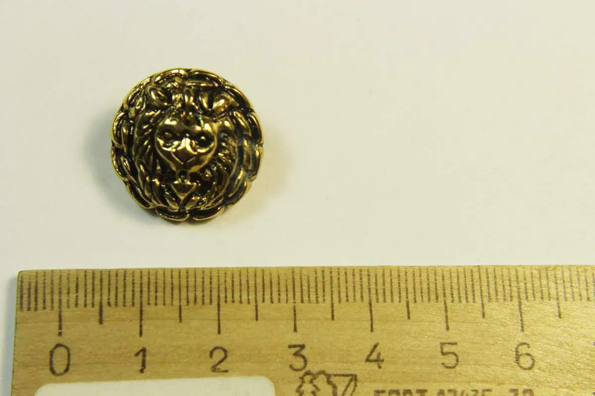 Пуговица металлическая, на ножке, "МОРДА ЛЬВА" золотого цвета, диаметр 20 мм