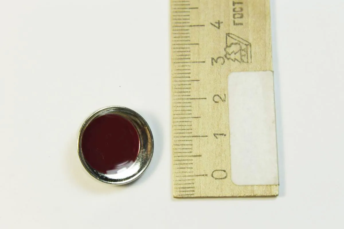 Пуговица металлическая, на ножке, никель с бордовой эмалью, диаметр 20 мм