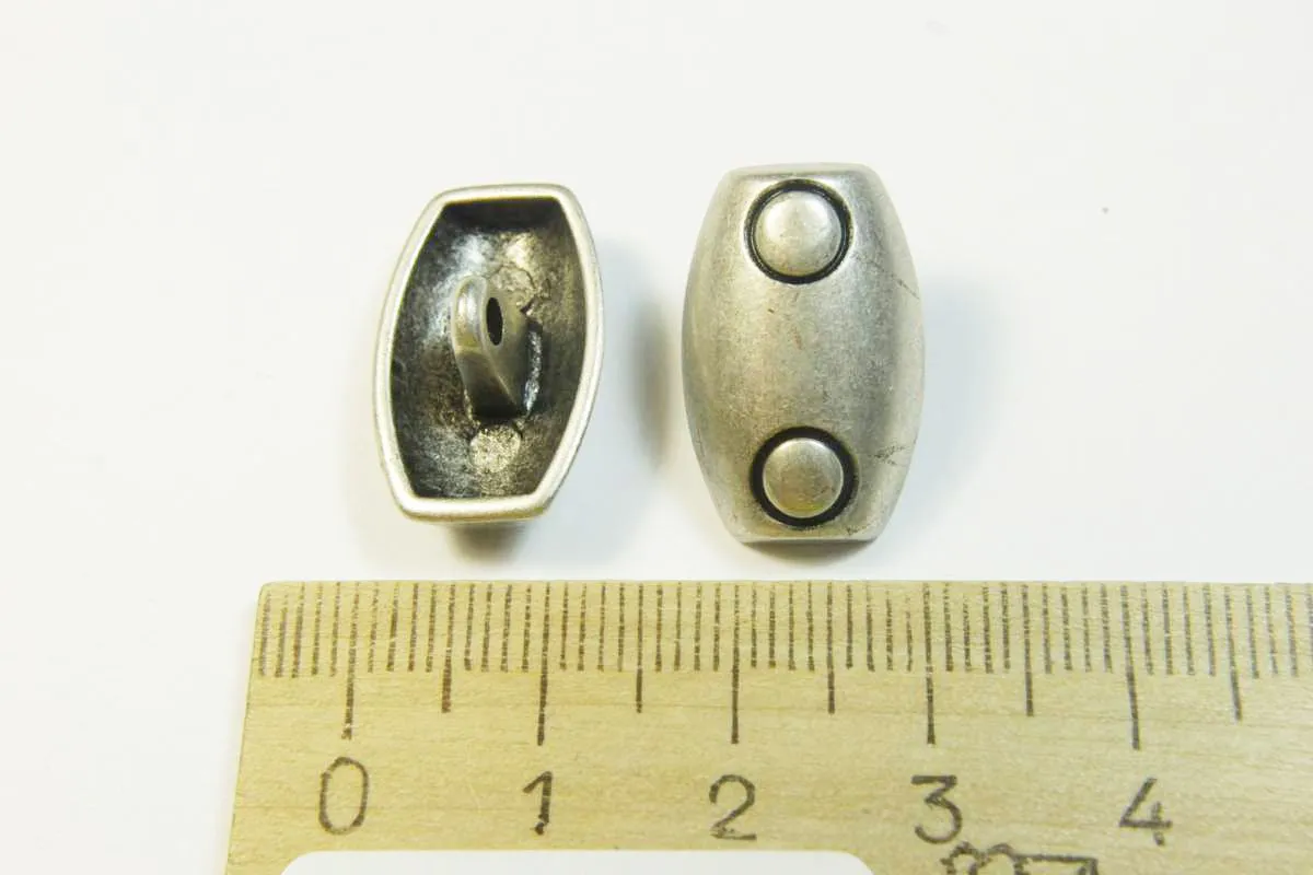 Пуговица металлическая, на ножке, прямоугольная, цвета матового серебра. Диаметр 20 мм