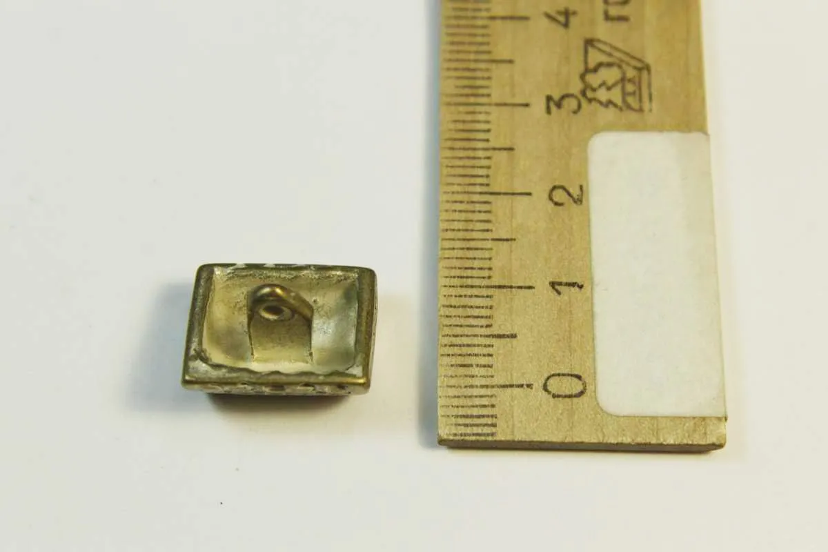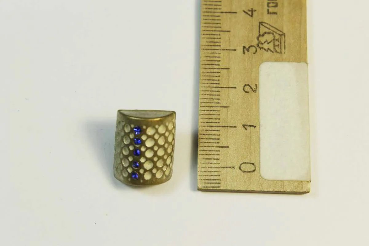 Пуговица металлическая, на ножке, "Сундучок", латунь со стразами синего цвета, диаметр 16 мм