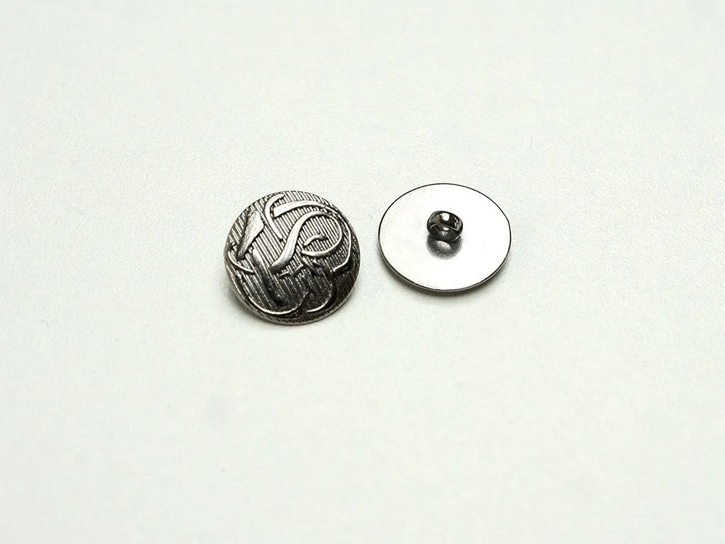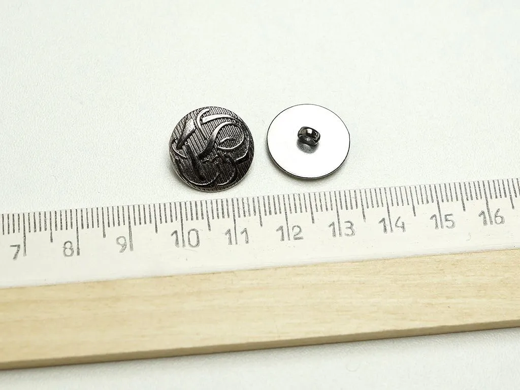 Пуговица металлическая, на ножке, "Узор Сердечки", цвет тёмного никеля , диаметр 17 мм