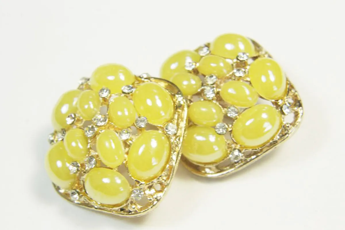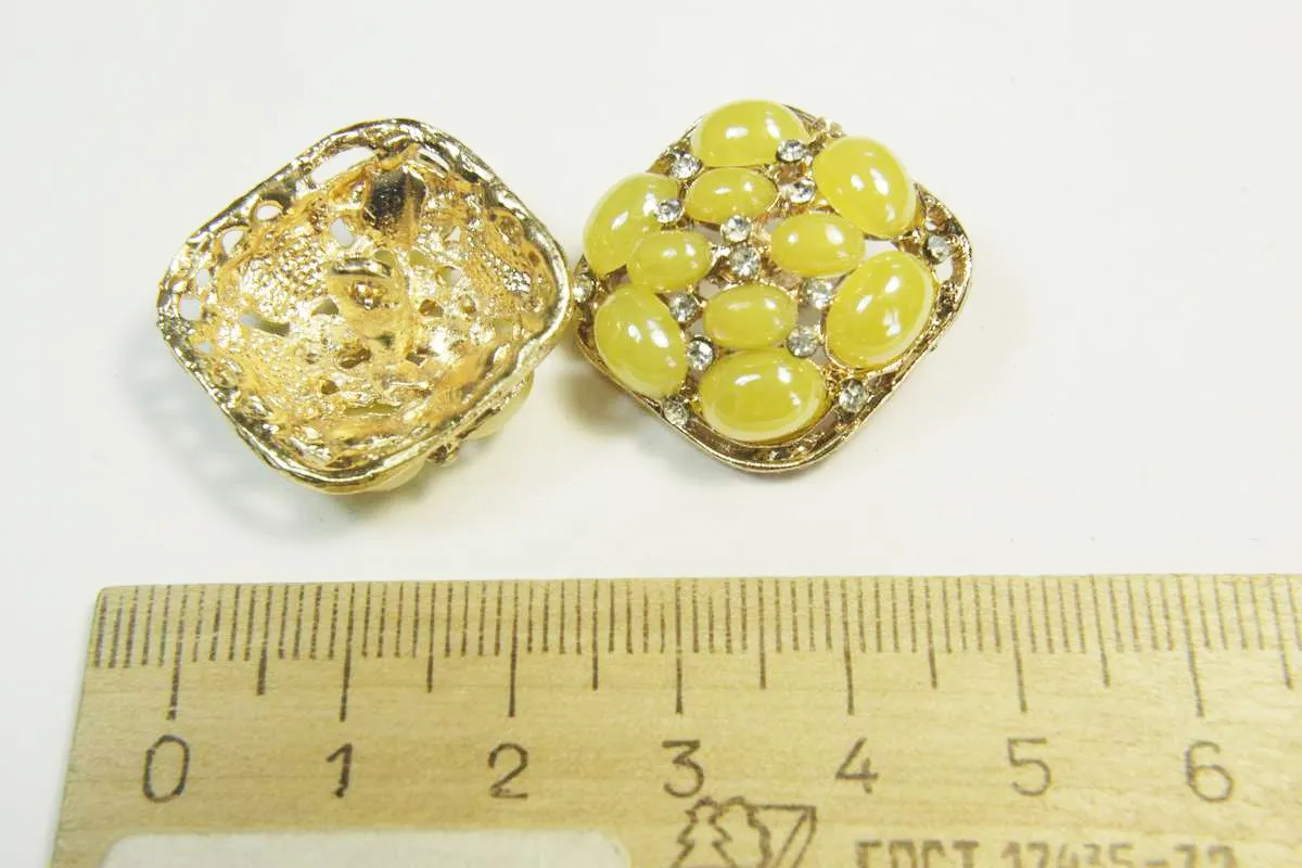 Пуговица металлическая на ножке жёлтого цвета со стразами и жемчугом диаметр 25 мм