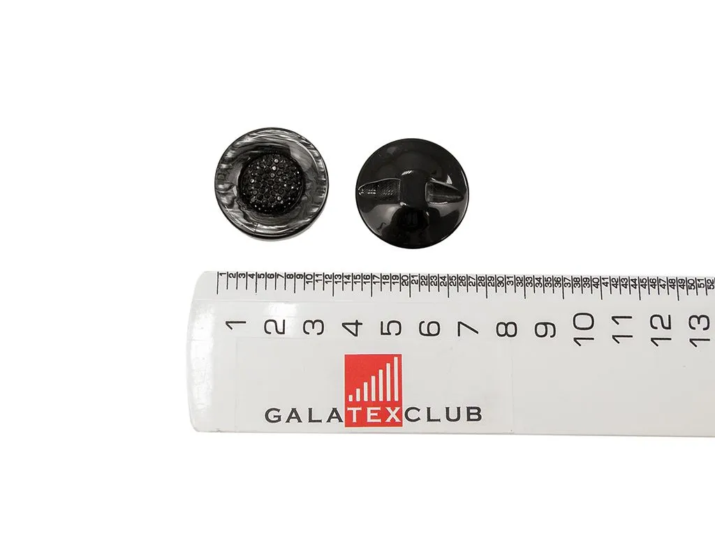 Пуговица на ножке, пластик. черная с россыпью бисера, диаметр 30 мм