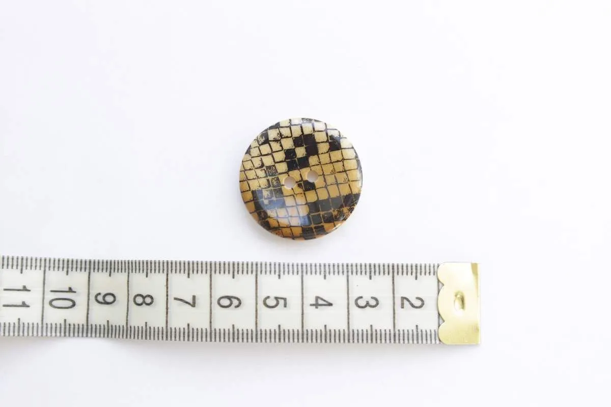 Пуговица пластмассовая, 2 прокола, бежевая рептилия, диаметр 27 мм