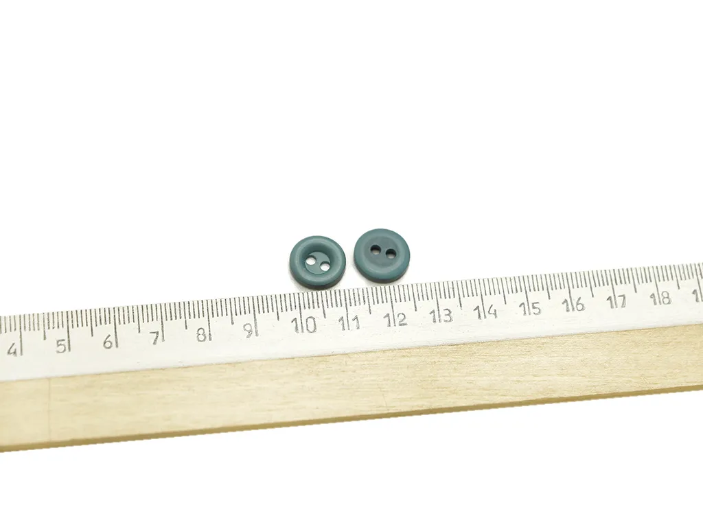Пуговица пластмассовая, 2 прокола, cеро-бирюзового цвета, диаметр 12 мм