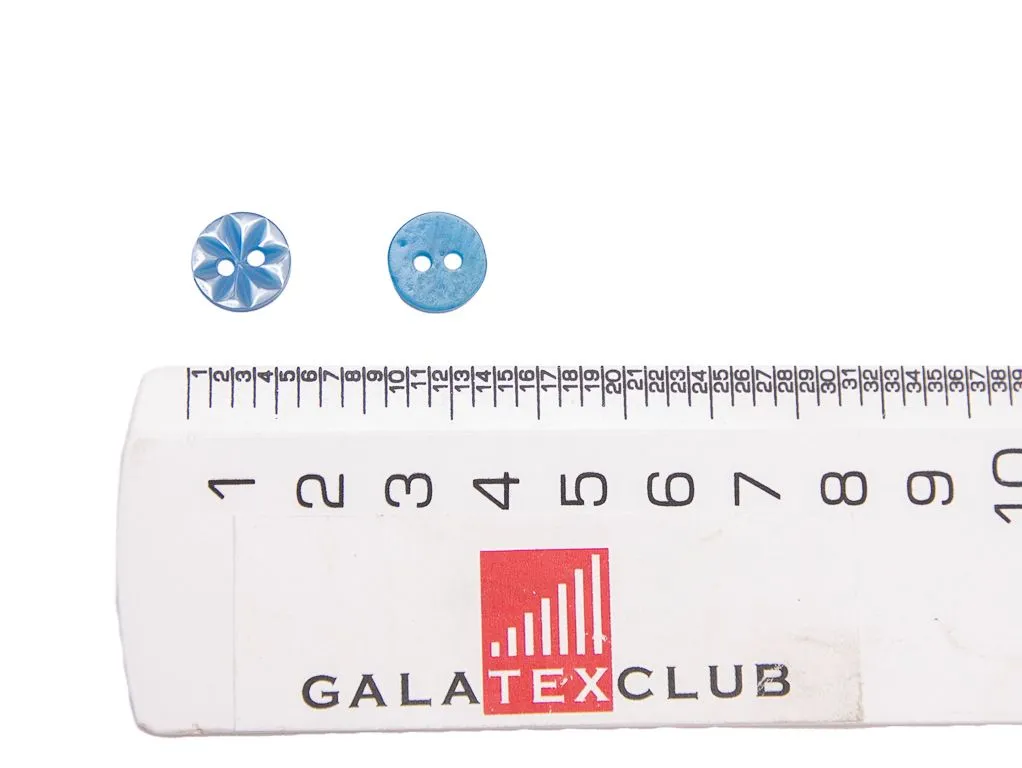 Пуговица пластмассовая, 2 прокола, голубая, перламутровая, диаметр 11 мм