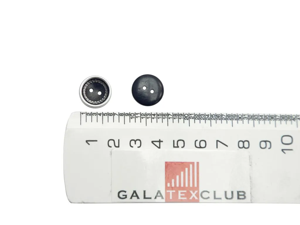 Пуговица пластмассовая, 2 прокола, ГРЕЧЕСКИЙ УЗОР, тёмно-синий/серебро, диаметр 15 мм