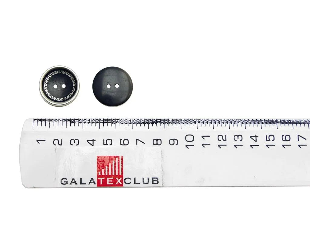 Пуговица пластмассовая, 2 прокола, ГРЕЧЕСКИЙ УЗОР, тёмно-синий/серебро, диаметр 25 мм