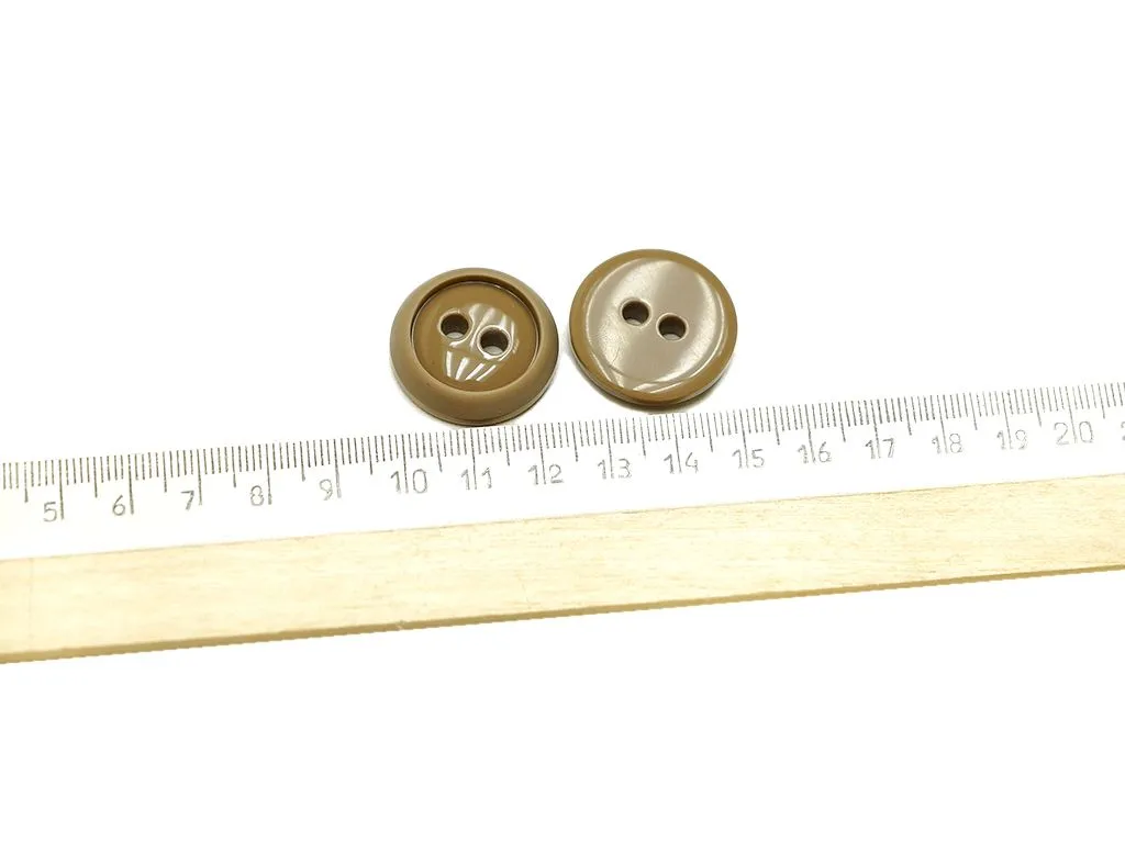 Пуговица пластмассовая, 2 прокола, коричневый глянец с матовым ободком, диаметр 25 мм