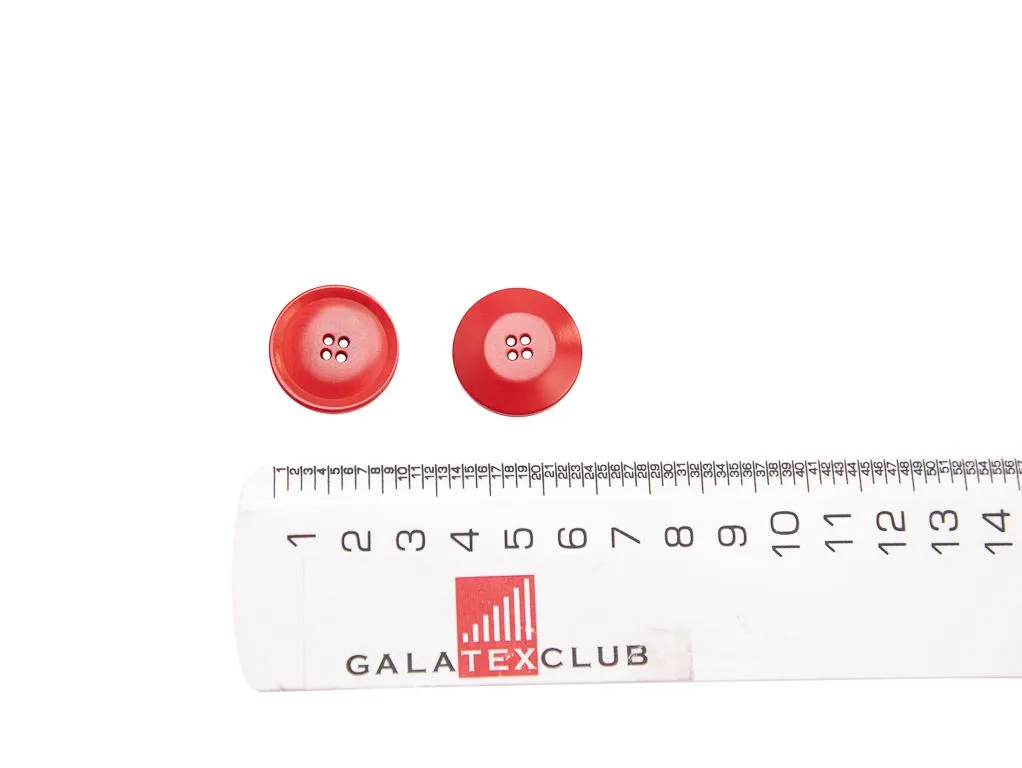 Пуговица пластмассовая, 2 прокола, красного цвета,с разводами, матовая, диаметр 24 мм