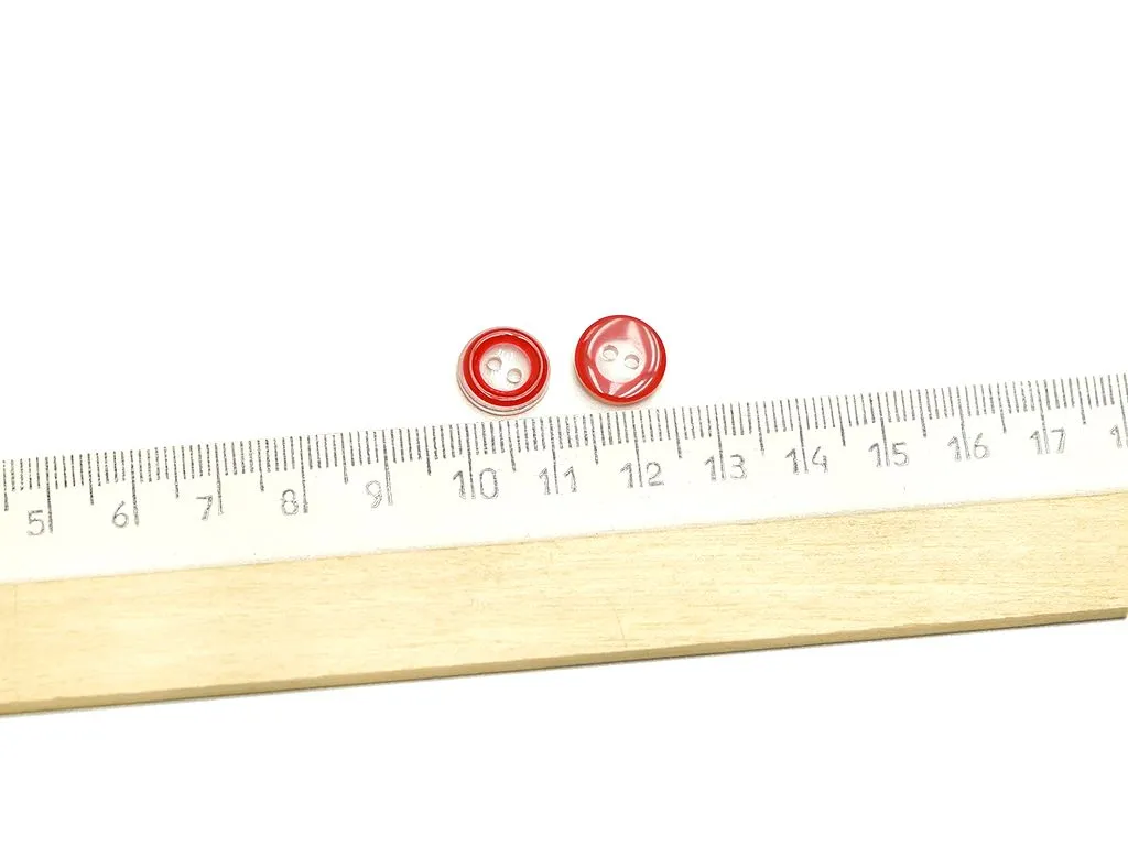 Пуговица пластмассовая, 2 прокола, красный / прозрачный, диаметр 11 мм
