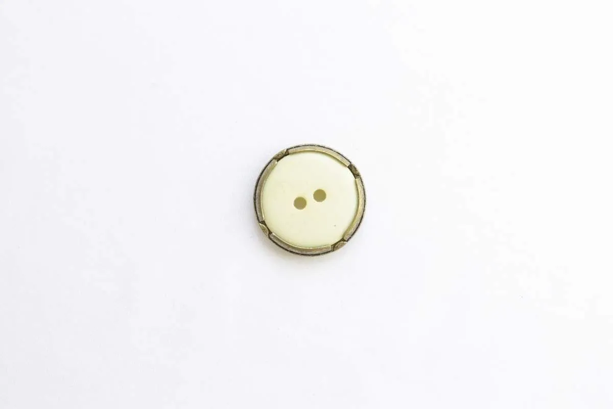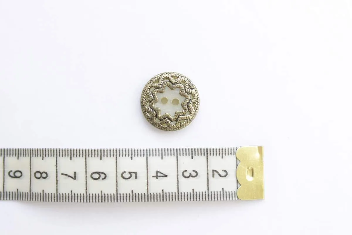 Пуговица пластмассовая, 2 прокола, перламутр с металлическим узором, диаметр 20 мм