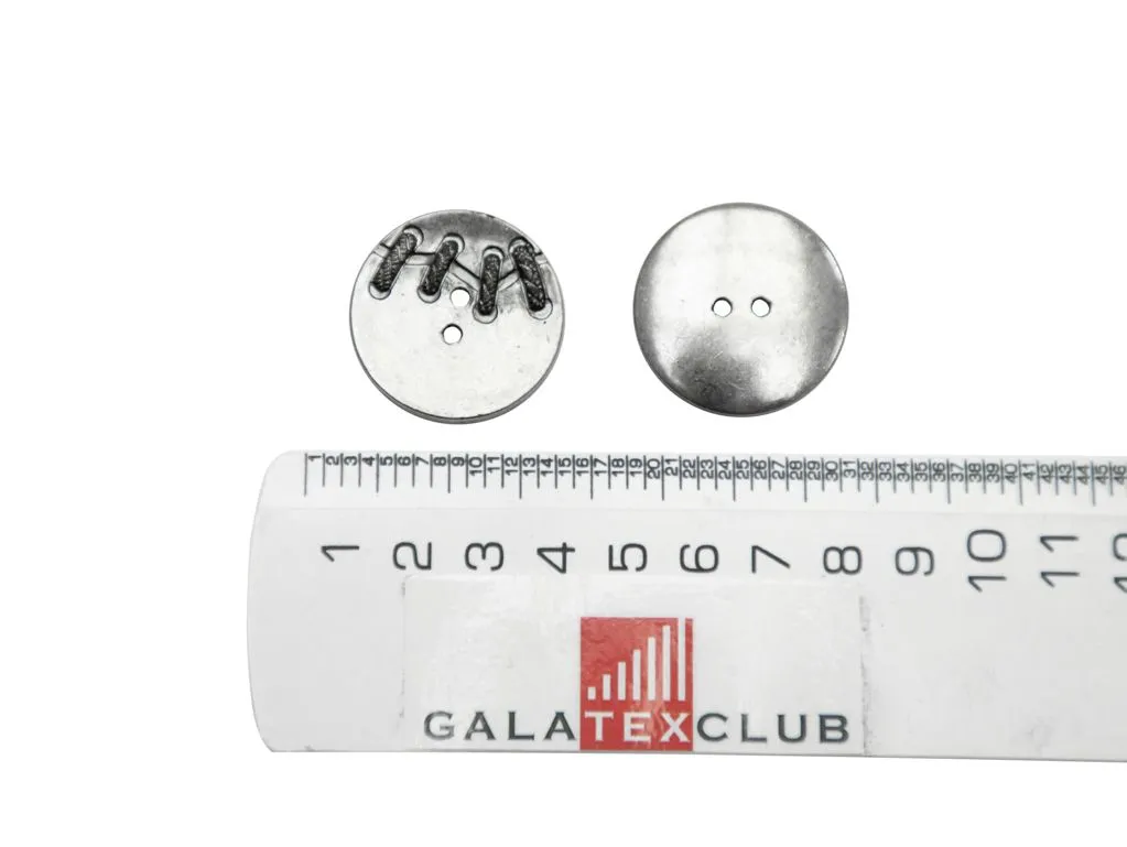 Пуговица пластмассовая, 2 прокола, под металл, со стежками, диаметр 29 мм