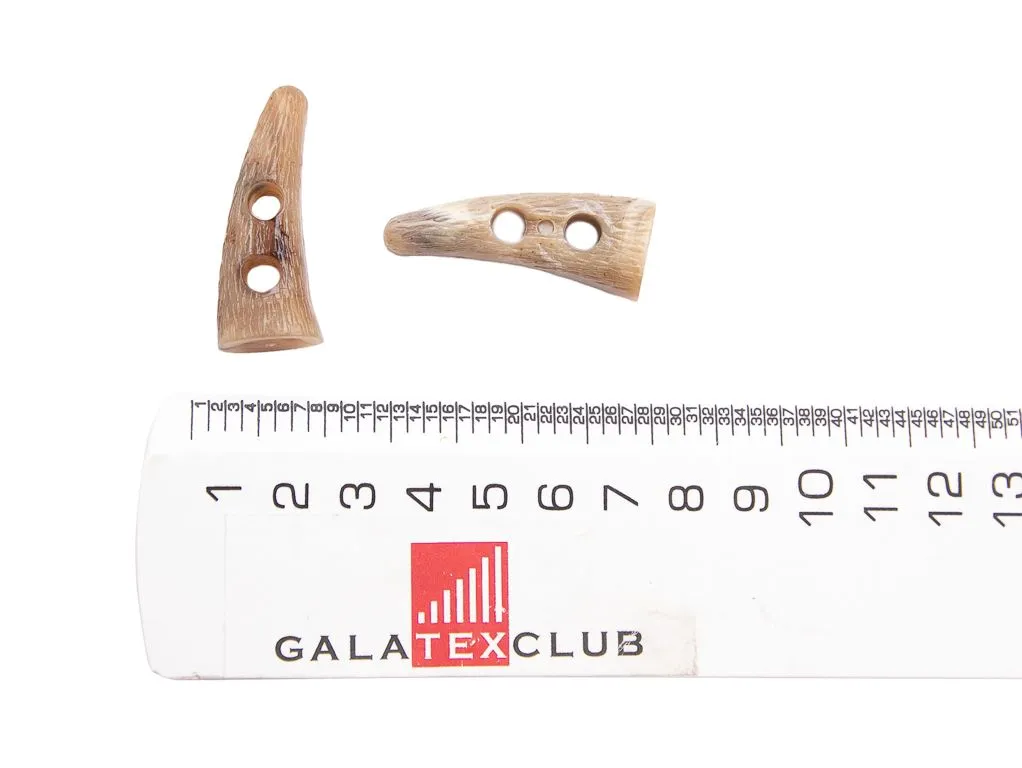 Пуговица пластмассовая, 2 прокола, "рожок", коричневый меланж, размер 40*15 мм