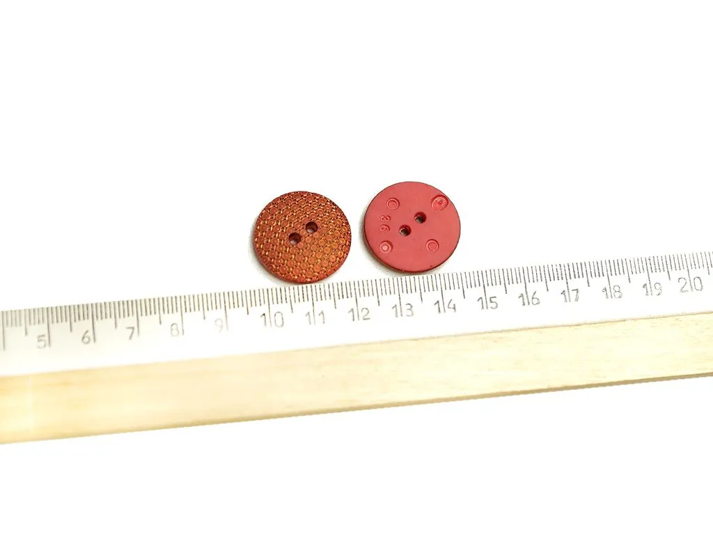 Пуговица пластмассовая, 2 прокола, розовая с золотой нитью, диаметр 22 мм