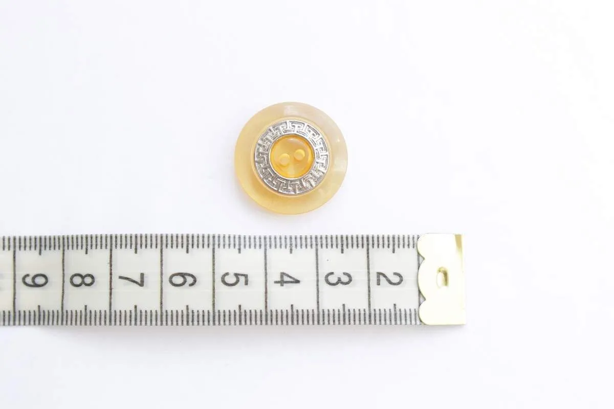 Пуговица пластмассовая, 2 прокола, с металлическим узором, оранжевая, диаметр 22 мм