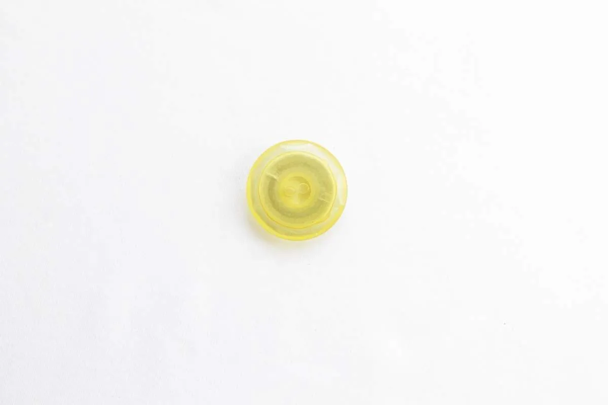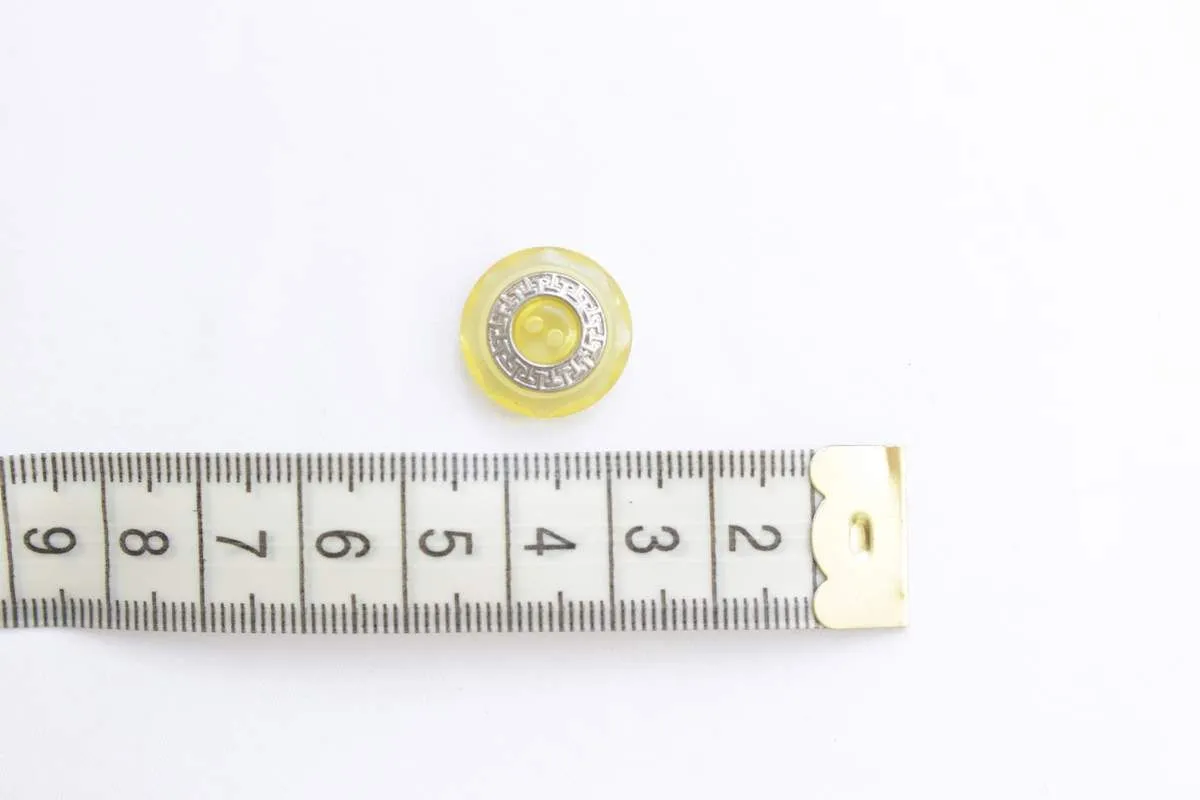 Пуговица пластмассовая, 2 прокола, с металлическим узором,жёлтая, диаметр 17 мм
