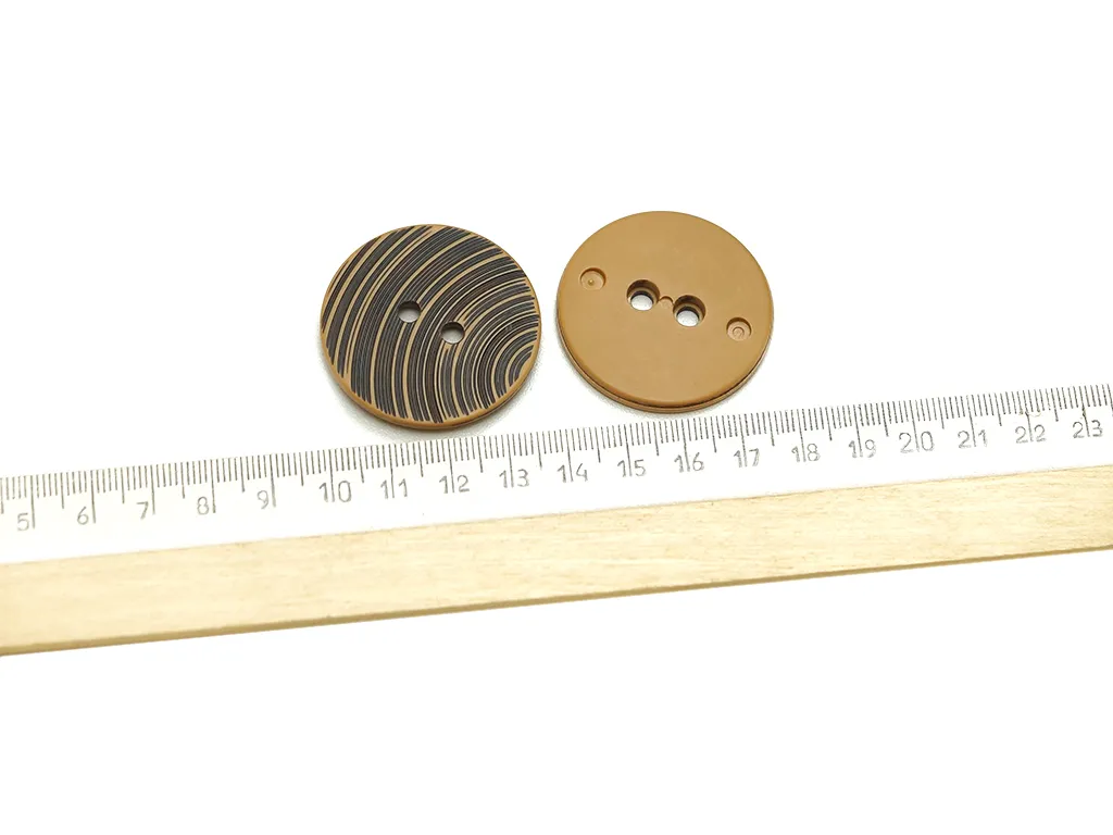 Пуговица пластмассовая, 4 прокола, бежево-коричневого цвета , диаметр 37 мм