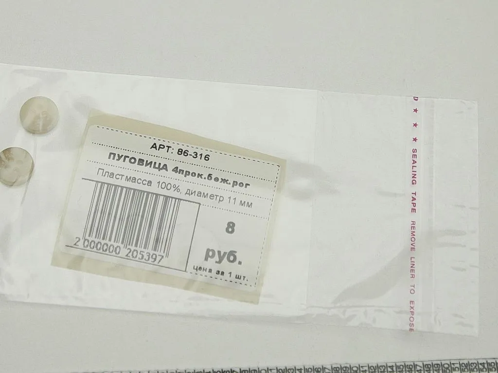 Пуговица пластмассовая, 4 прокола, бежевый, под рог, диаметр 11 ммфото (фото 2)