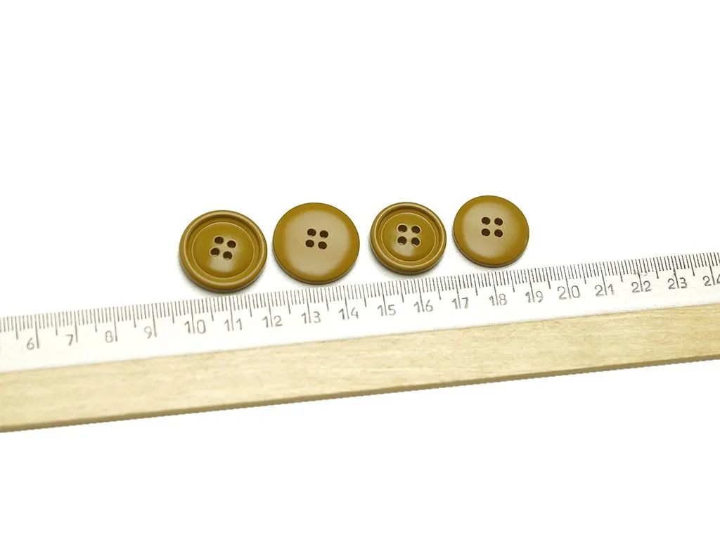 Пуговица пластмассовая, 4 прокола, горчичного цвета, диаметр 23 мм
