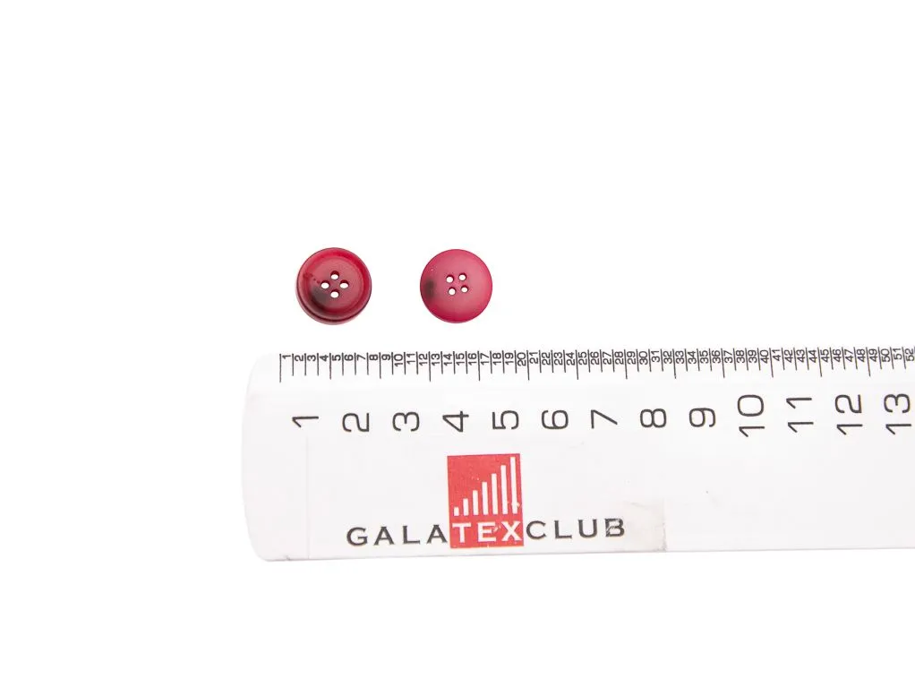 Пуговица пластмассовая, 4 прокола, малиново-чёрный меланж, диаметр 15 мм