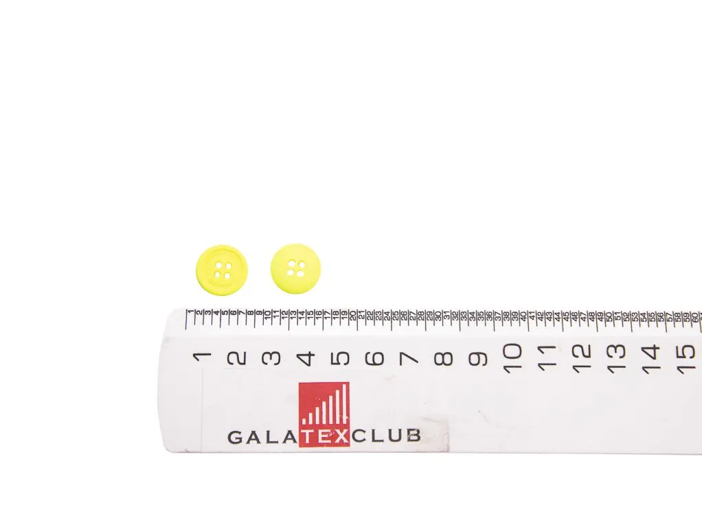 Пуговица пластмассовая, 4 прокола, неоновый жёлтый, диаметр 15 мм