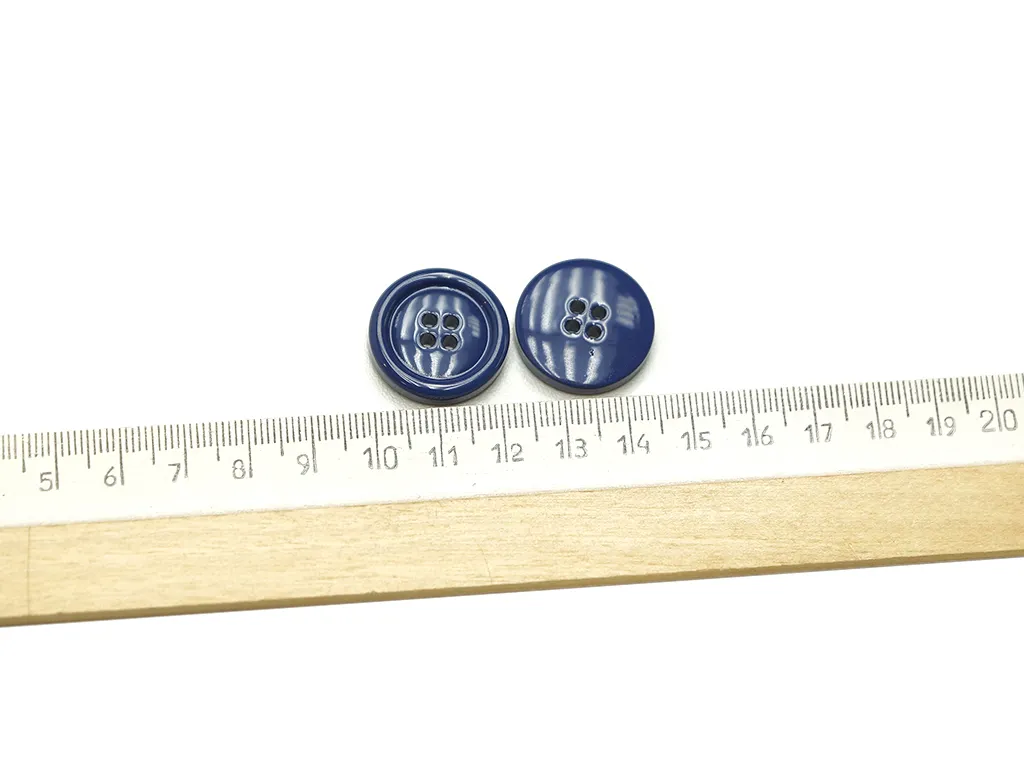 Пуговица пластмассовая, 4 прокола, синего цвета, диаметр 22 мм