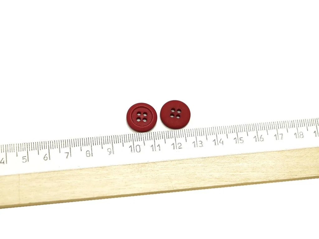 Пуговица пластмассовая, 4 прокола, цвет красный матовый, диаметр 15 мм