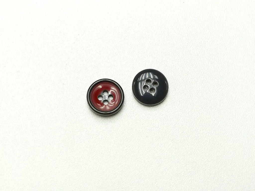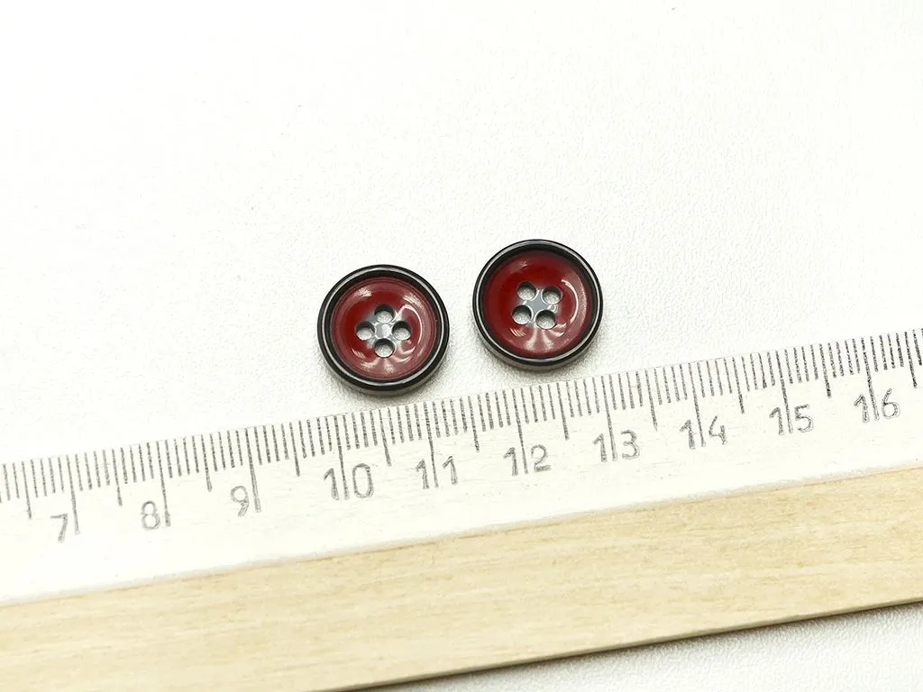 Пуговица пластмассовая, 4 прокола, цвет серый/красный, диаметр 15 мм