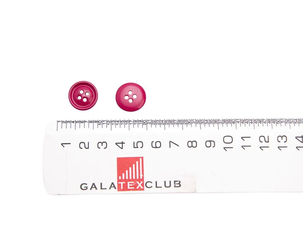 Пуговица пластмассовая, 4 прокола, тёмно-розовая, диаметр 17 мм