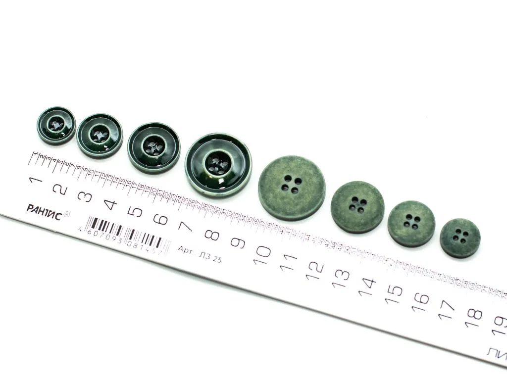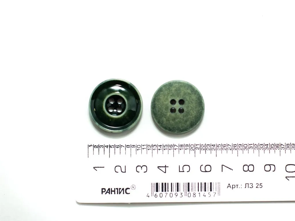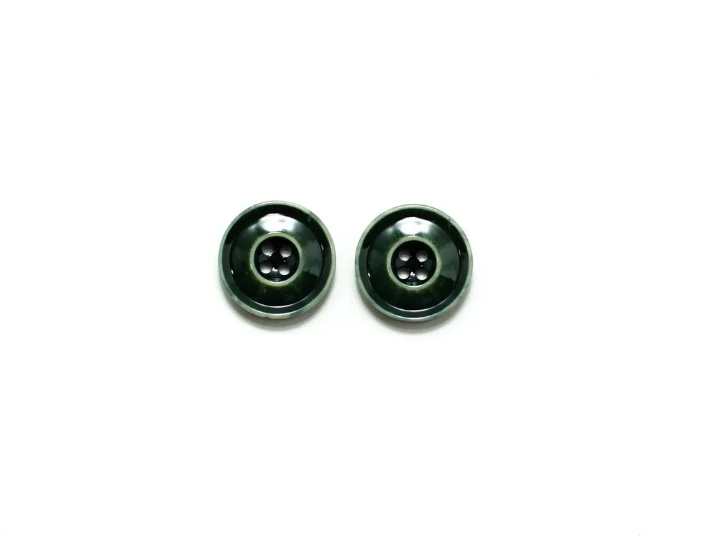 Пуговица пластмассовая, 4 прокола, зелёный глянец,с ободком, диаметр 25 мм