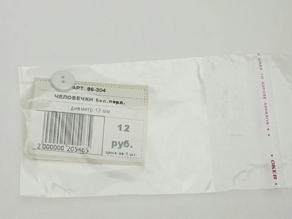Пуговица пластмассовая "ЧЕЛОВЕЧКИ", два прокола, белого цвета, перламутровая, диаметр 13 ммфото (фото 2)