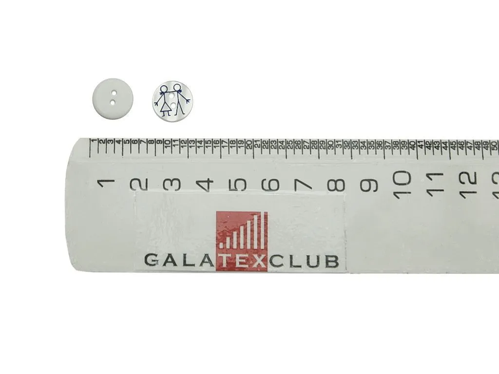Пуговица пластмассовая "ЧЕЛОВЕЧКИ", два прокола, белого цвета, перламутровая, диаметр 13 мм