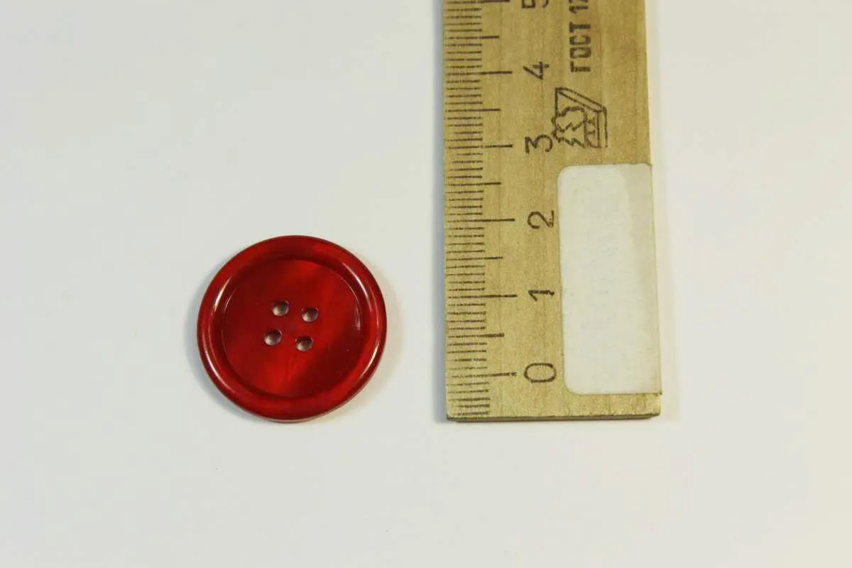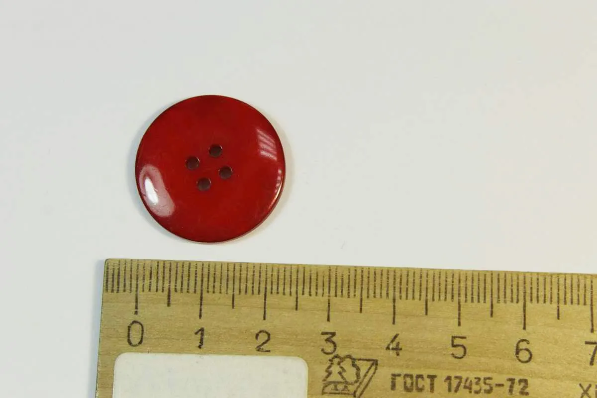 Пуговица пластмассовая, четыре прокола, алый глянец, диаметр 24 мм