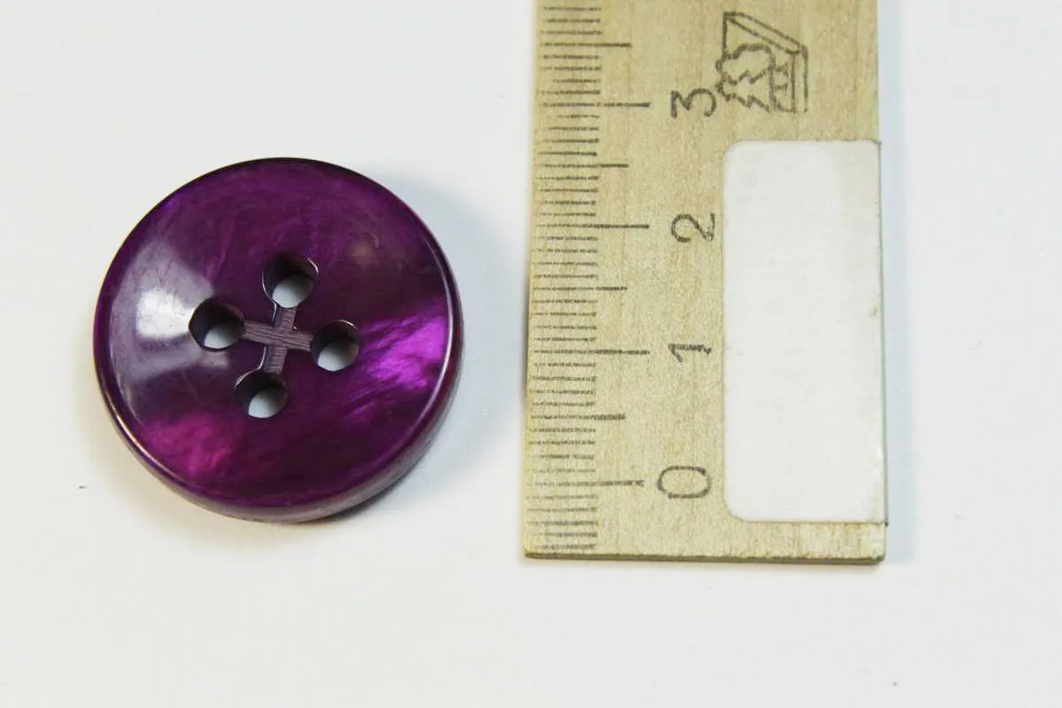 Пуговица пластмассовая, четыре прокола, фиолетовый перламутр, диаметр 27 мм