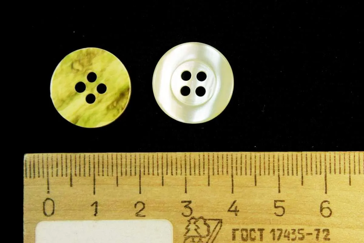Пуговица пластмассовая. четыре прокола, перламутр на подложке мультиколор, диаметр 17 мм