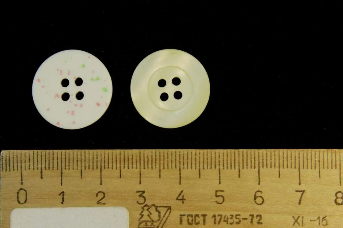 Пуговица пластмассовая, четыре прокола, перламутр на подложке мультиколор, диаметр 20 мм