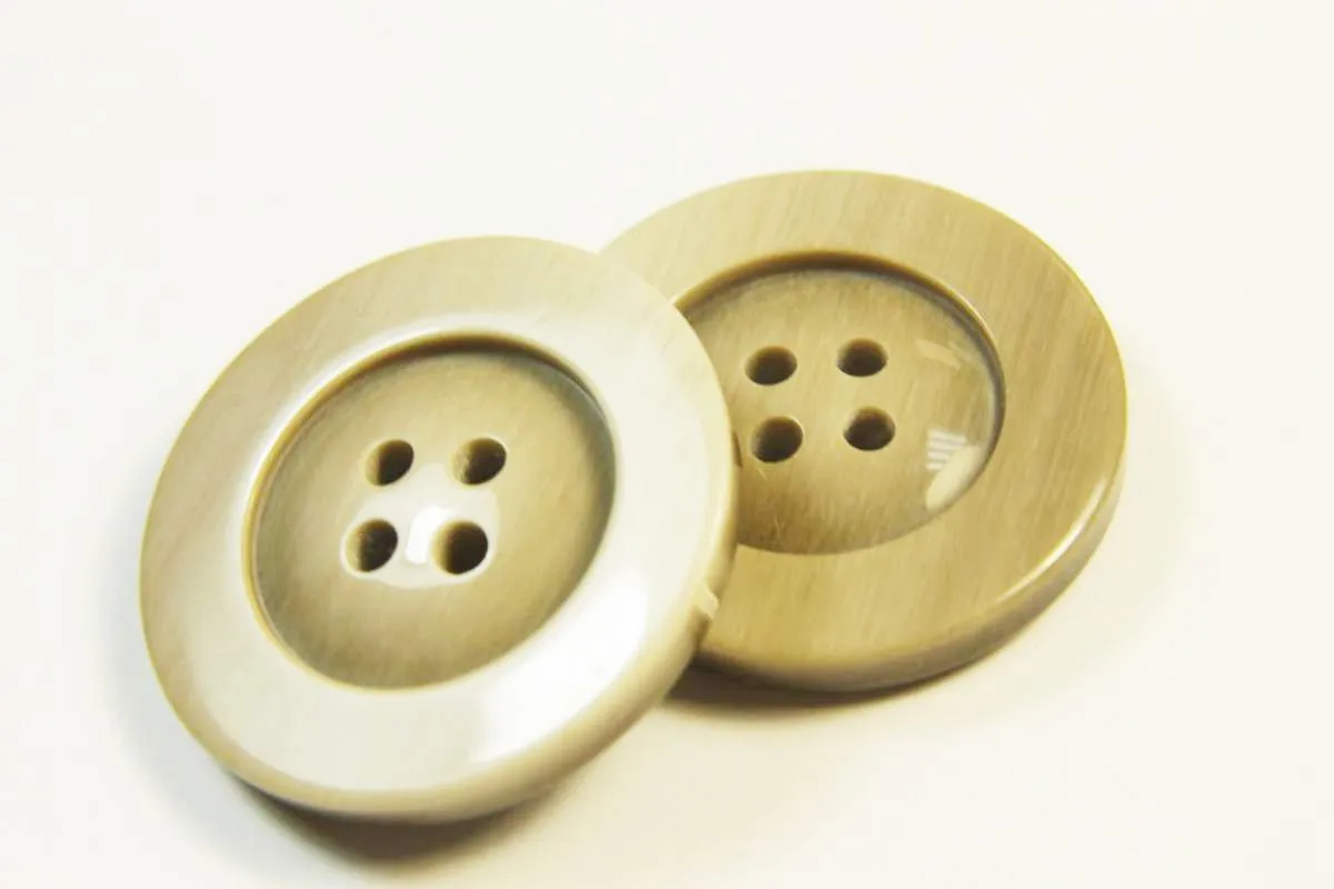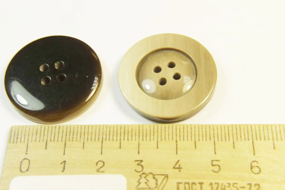 Пуговица пластмассовая, четыре прокола, светло-коричневыё глянец, диаметр 28 мм
