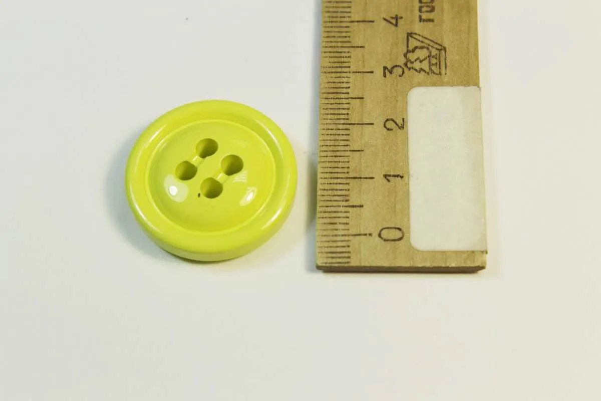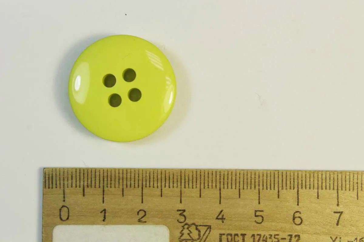 Пуговица пластмассовая, четыре прокола, светло-салатового цвета, диаметр 27 мм