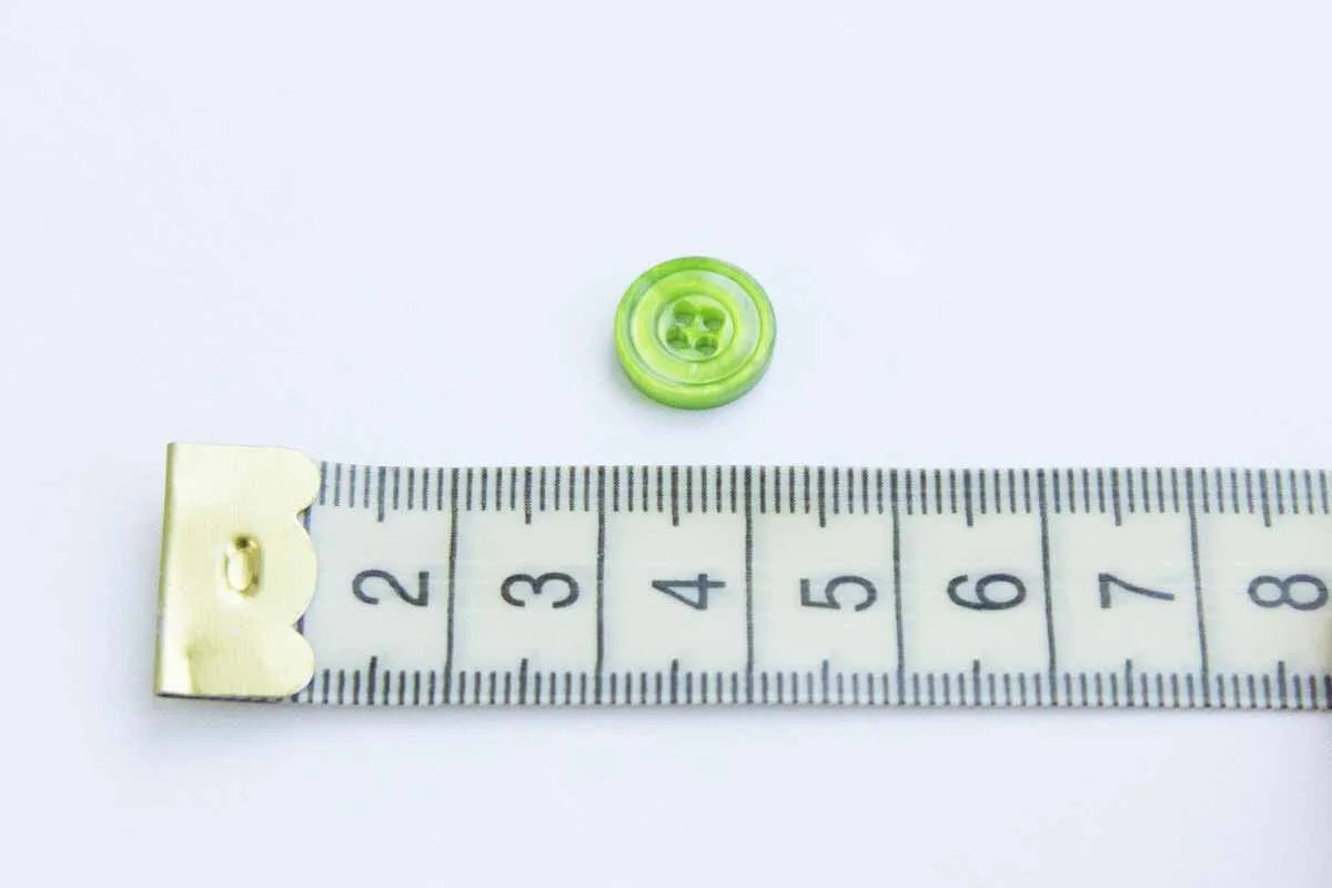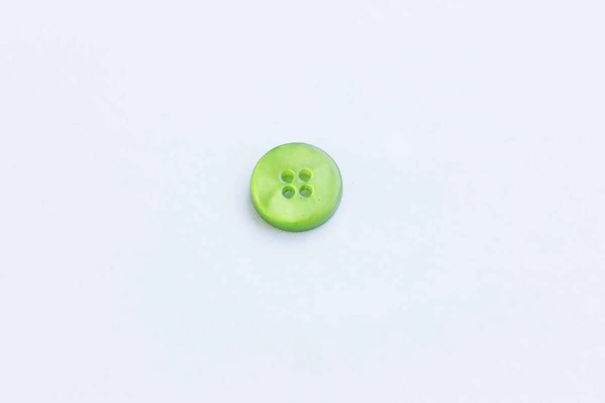 Пуговица пластмассовая, четыре прокола, светло-зелёный перламутр, диаметр 11 мм