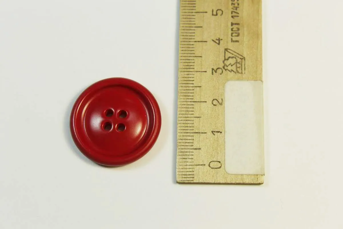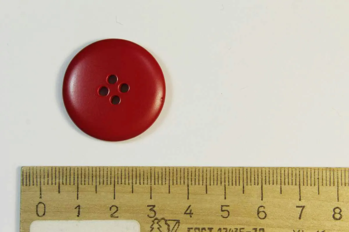 Пуговица пластмассовая, четыре прокола, тёмно-красного цвета, диаметр 28 мм