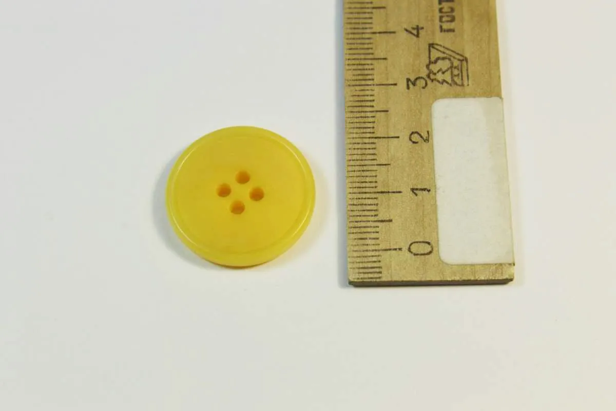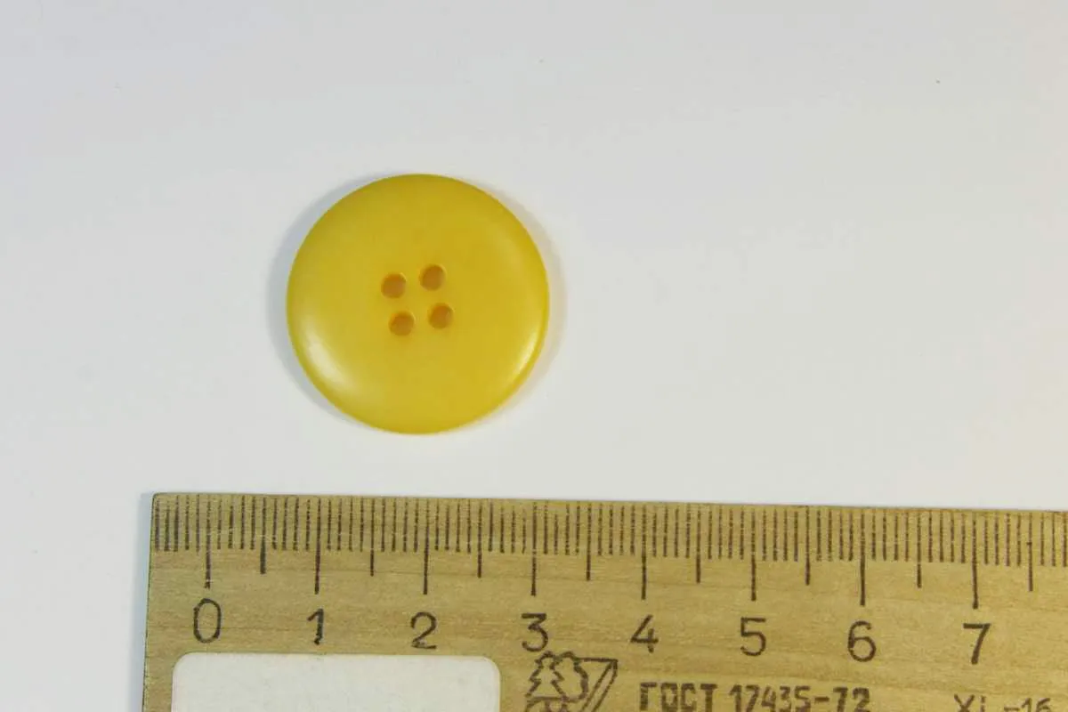 Пуговица пластмассовая, четыре прокола, жёлтого цвета, диаметр 24 мм