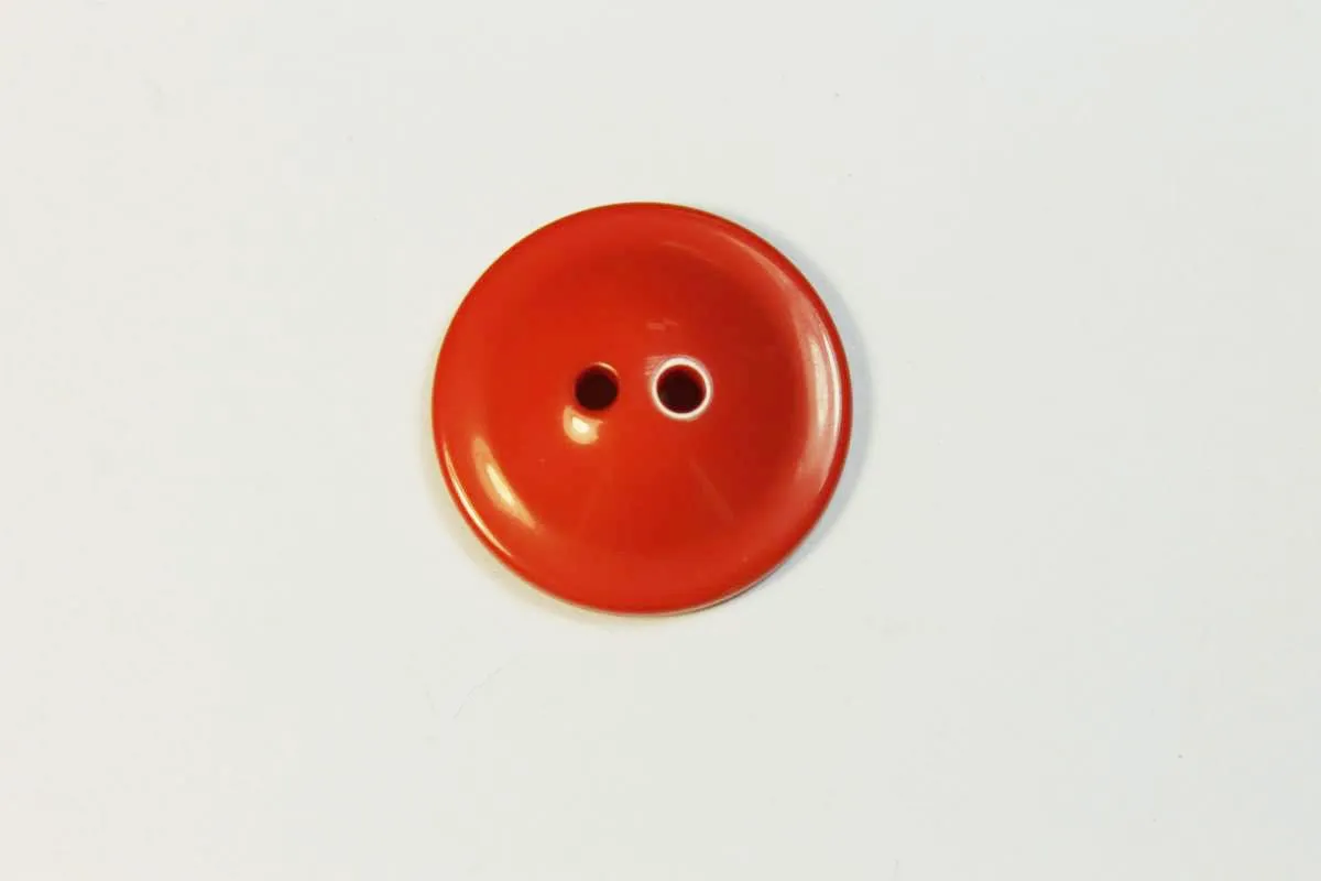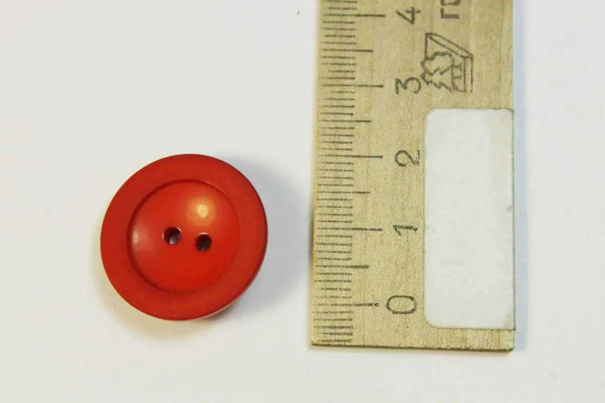 Пуговица пластмассовая, два прокола, алого цвета, диаметр 22 мм