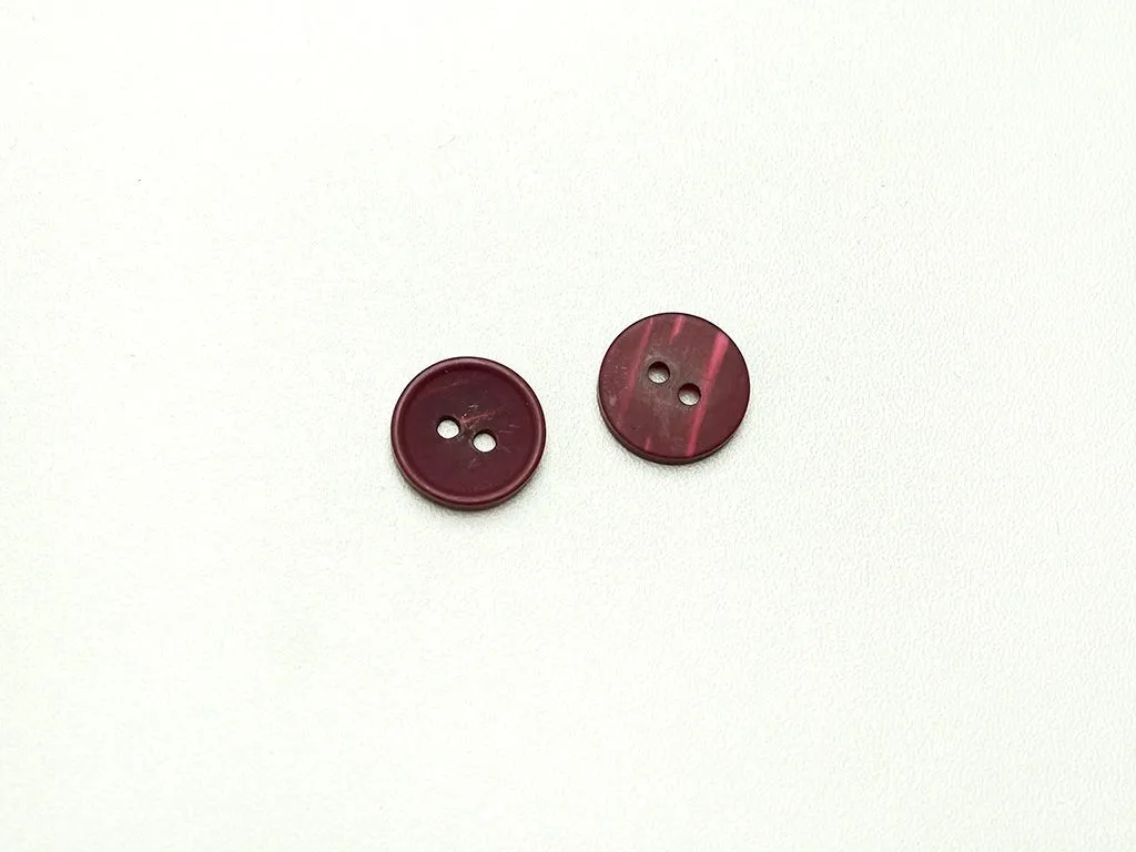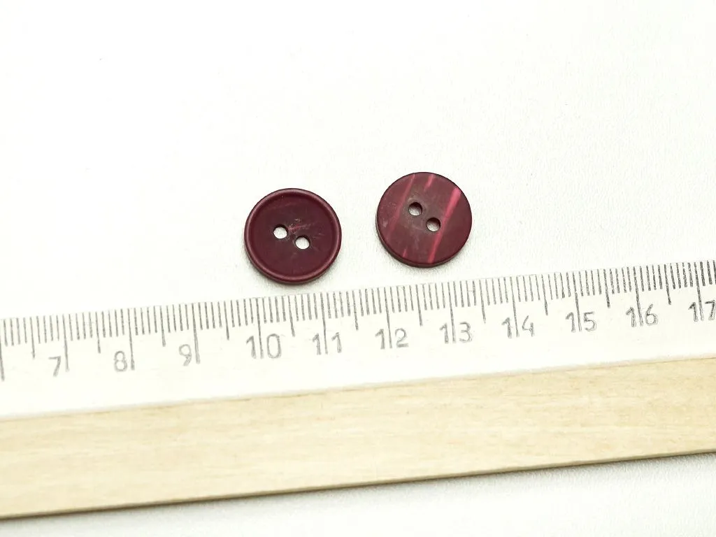 Пуговица пластмассовая, два прокола, бордового цвета, диаметр 15 мм
