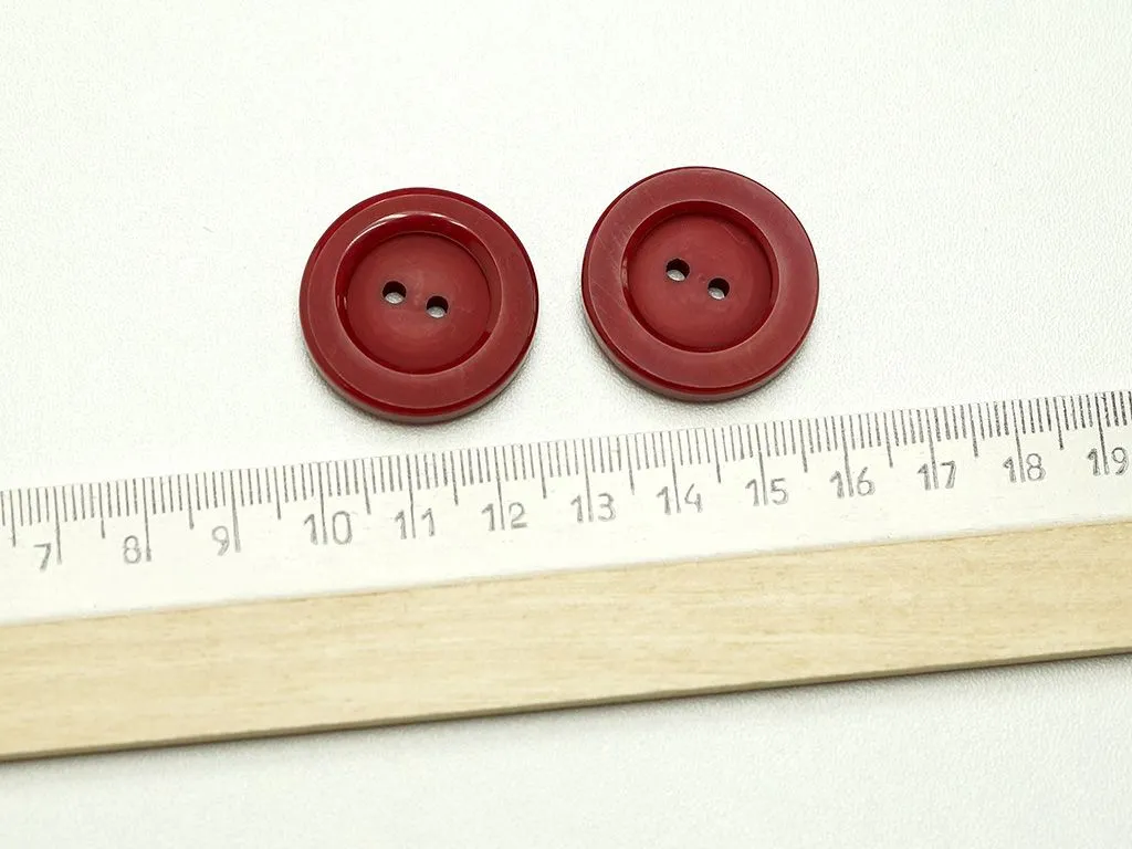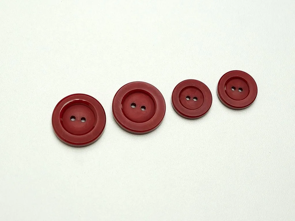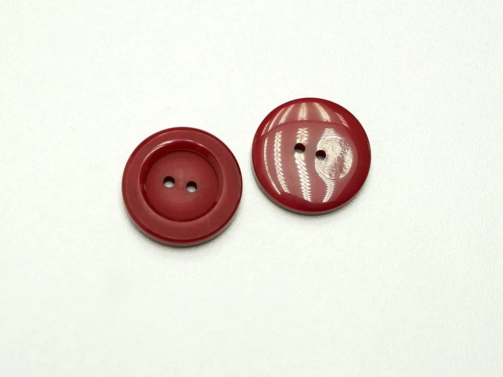 Пуговица пластмассовая, два прокола, бордового цвета, диаметр 28 мм
