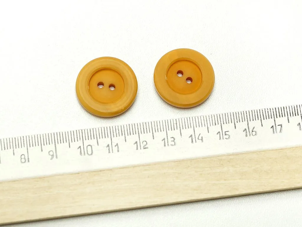 Пуговица пластмассовая, два прокола, горохового цвета, диаметр 23 мм
